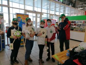 Ребята раздали цветы и поделки, сделанные руками детей, за добровольные пожертвования в благотворительный фонд.