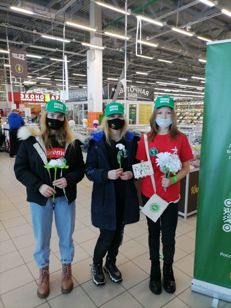 Волонтёры кинешемского отделения молодёжного патриотического Движения «Новый Рубеж» провели акцию «Белый цветок». Они собирали пожертвования для детей, больных онкологическими заболеваниями.