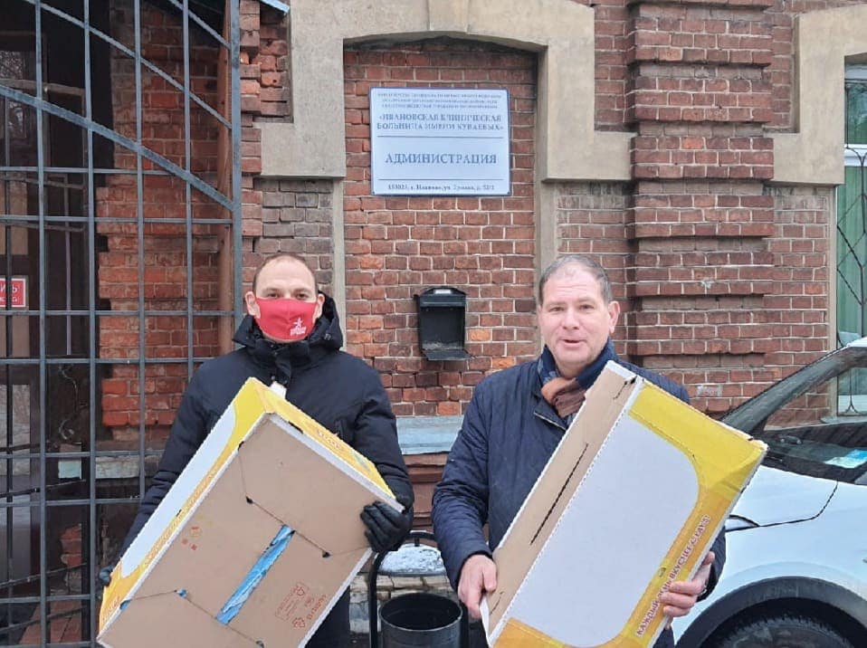 Волонтеры Движения «Новый Рубеж» приняли участие в благотворительной акции Фонда продовольствия «Русь» по передаче антисептиков и продуктовых наборов врачам ивановских больниц.